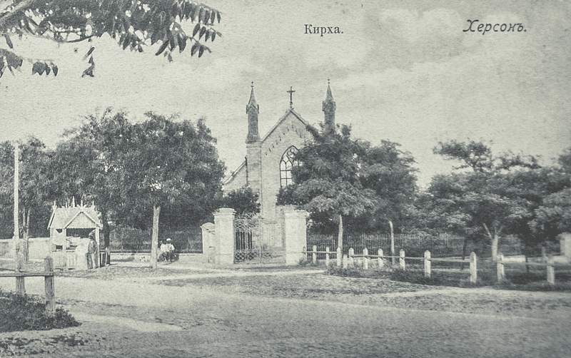 Лютеранська церква, що дала назву вулиці, була побудована у 1867 році. Будівля слугувала церковним будинком для Херсонської лютеранської громади. Наприкінці 40-х років минулого століття кірха була зруйнована. Церква була спроєктована 1865 року архітекторами Олександром Пальшау та Карлосом фон Штемпелем. Будівництво розпочалося 12 травня 1867 року і тривало до початку 70-х років 19 століття.